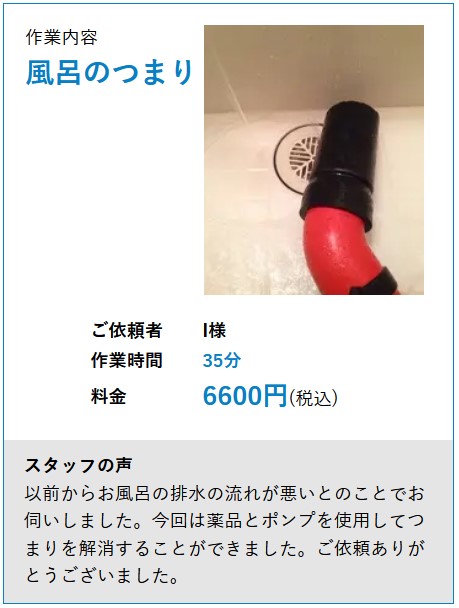 宝塚市で対応可能なお風呂(浴室)の修理サービスとなります。その他のトラブルはお気軽に受付スタッフまでご相談ください。